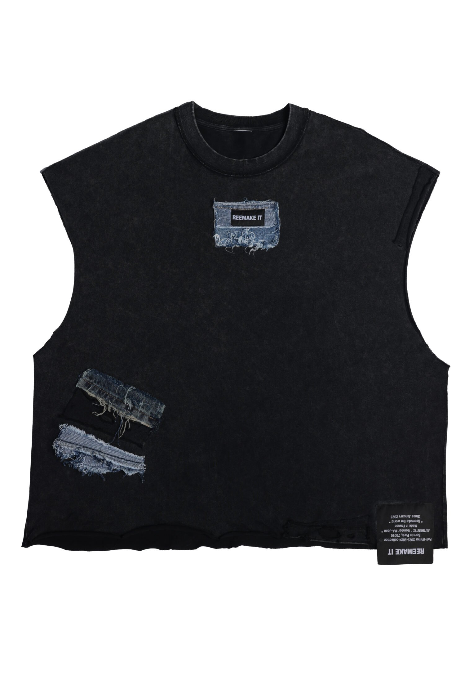 T-SHIRT SANS MANCHES REEMAKE IT BLUE JEAN POUR HOMME EN NOIR USÉ