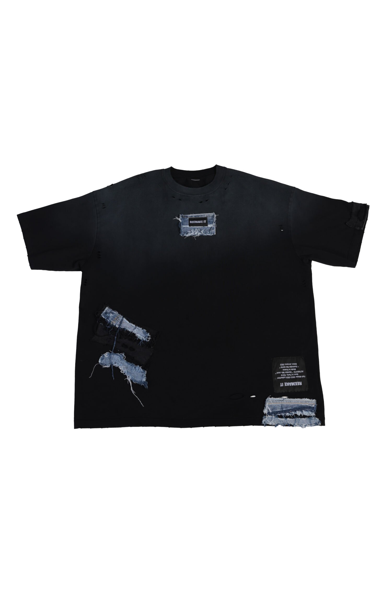 T SHIRT REEMAKE IT BLUE JEAN UNISEX EN NOIR USÉ